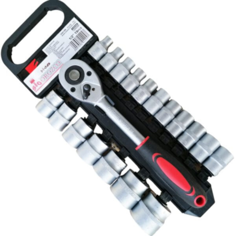 Juego de carraca y vasos 1/2″ 8-32mm. 19 piezas, con un peso de total de 2.5 kilogramos.
