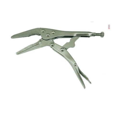 Alicate presión mordaza de pico 250mm; fabricado en acero, ajustable con bloqueo y palanca de desbloqueo