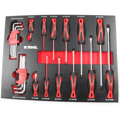 - Destornilladores: 6×38, 5×75, 3×100, 6×100, 8×150, 10×200, PH2x38, PH0x75, PH1x100, PH2x100, PH3x150, PH4x200