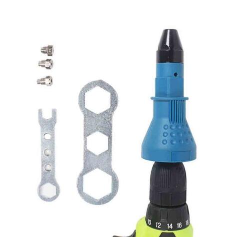 Adaptador para topo tipo de taladros con cable y electro portátiles para poder colocar remaches de aluminio ( convertirlo a remachadora eléctrica )