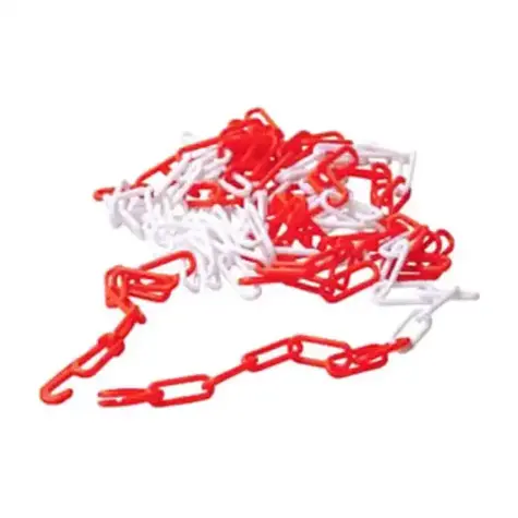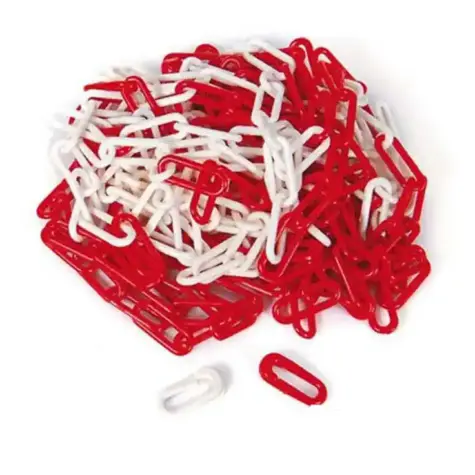 Cadena de Advertencia blanco y rojo – Seguridad PVC 5 Metros. Hecho totalmente de plástico, el cual incluye dos conectores de puntas.