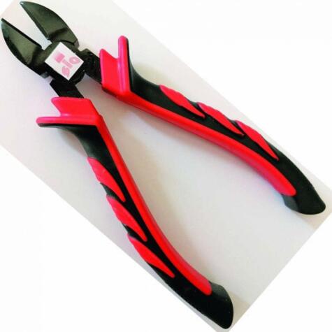 Alicates laterales para cortar alambre, bridas, etc. De servicio pesado, satinado. Asa ergonómica cubierta con plástico antideslizante.