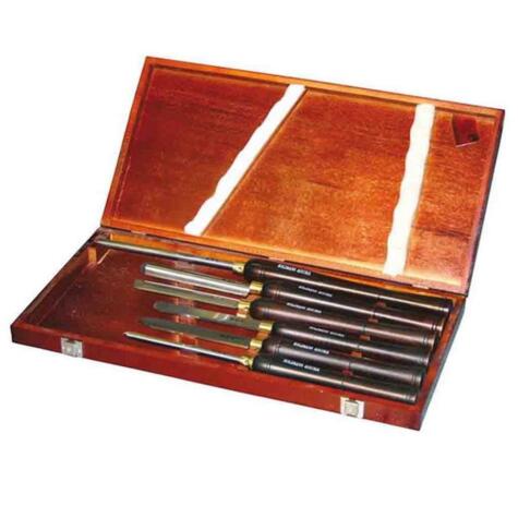 Kit de 6 gubias para tornero presentadas en un elegante estuche de madera, fabricadas en Austria.