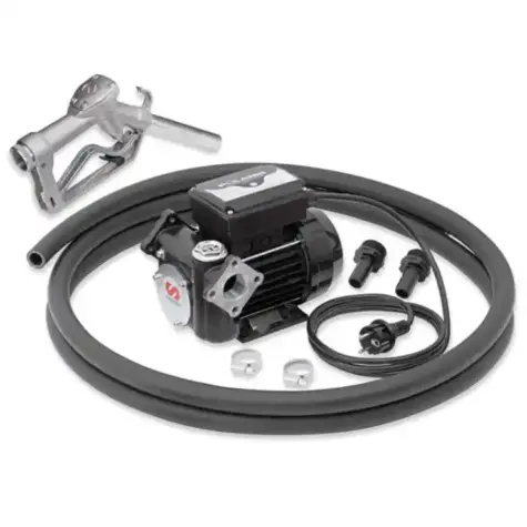 El kit de bomba de trasvase de gasoil 220V cuenta con un motor eléctrico potente que permite una transferencia rápida y eficiente del combustible.