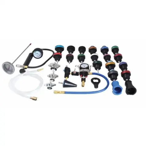Kit de prueba de fugas de radiador de 27 piezas y cambio rápido de refrigerante.