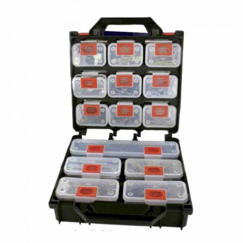 Maleta con Compartimentos Individuales Móviles Profesional, Visión clara a través de los compartimientos para seleccionar la caja correcta.