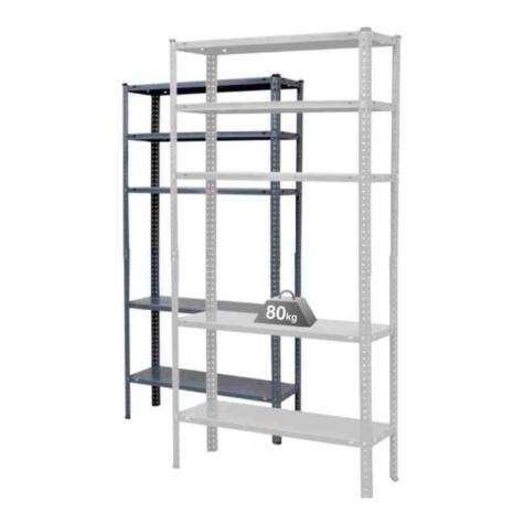 Estantería Metálica Blanca con medidas en 180 cm de Alto, 90 cm de ancho con 30 cm de profundidad. Resistencia: 80 kilos por estante