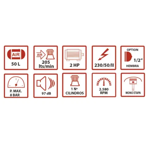– Electrocompresor portátil 2 Hp/50 Lts.