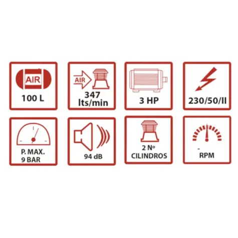 230v – 3 cv – 100 Litros – 10 Bar