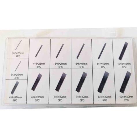 Surtido de chavetas que contiene 13 referencias / medidas ideal para talleres, reposición de una perdida, dañada, para instalar ejes o poleas nuevas..