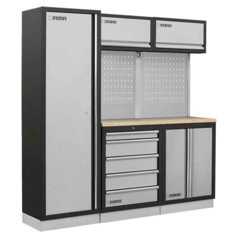 Conjunto Muebles Modulares Para Taller Fervi A007C, la solución óptima para amueblar su taller, su garaje o su racing esquina.