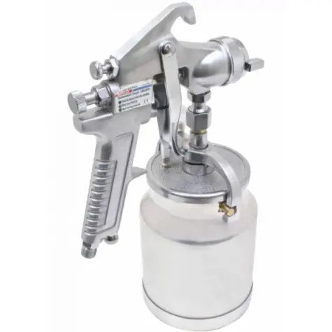 Pistola pulverizadora perfecta para pintar grandes superficies. Sistema de recogida de pintura: vacío del depósito de 1,0 l.