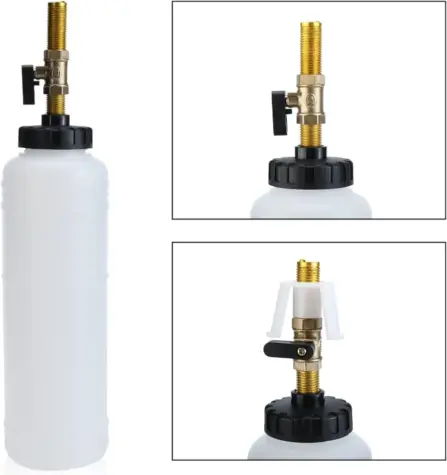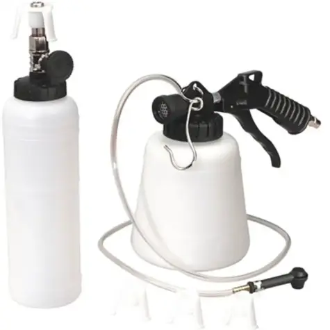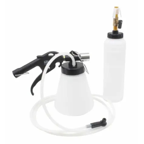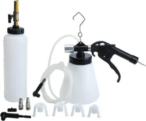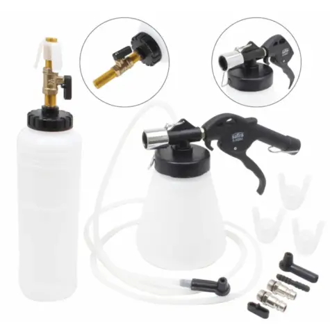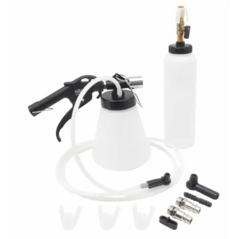 kit manejable adaptado a líquido de frenos con sistema veturi, gracias al cual se crea un vacío que permite ventilar el sistema de frenos.
