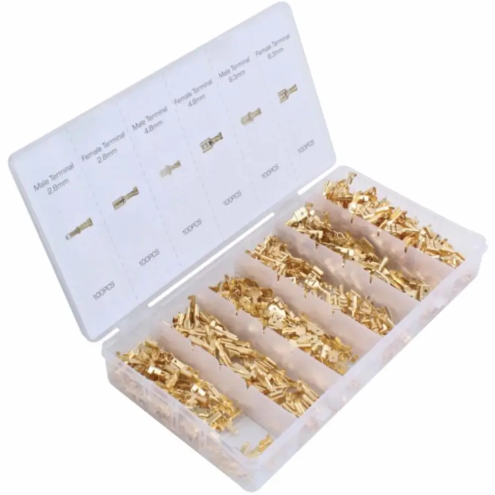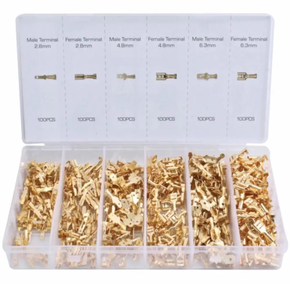 Incluye todos los terminales necesarios para cableado eléctrico en vehículos, embarcaciones, maquinaria y reparaciones domésticas.