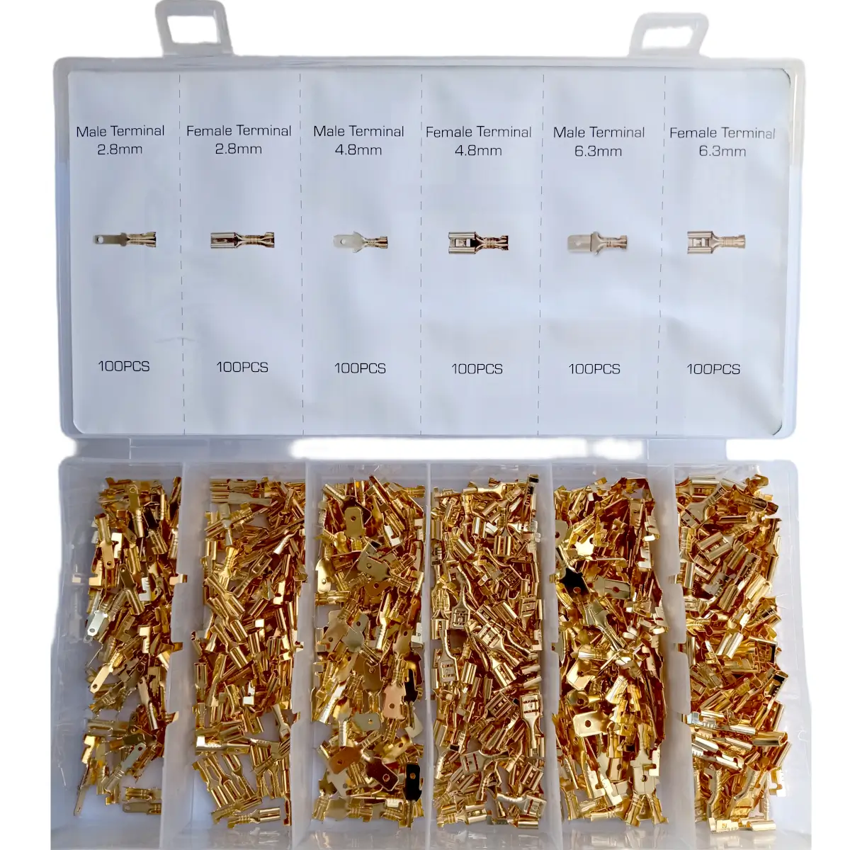 Caja rígida con compartimentos para mantener todos los conectores ordenados y fáciles de localizar.